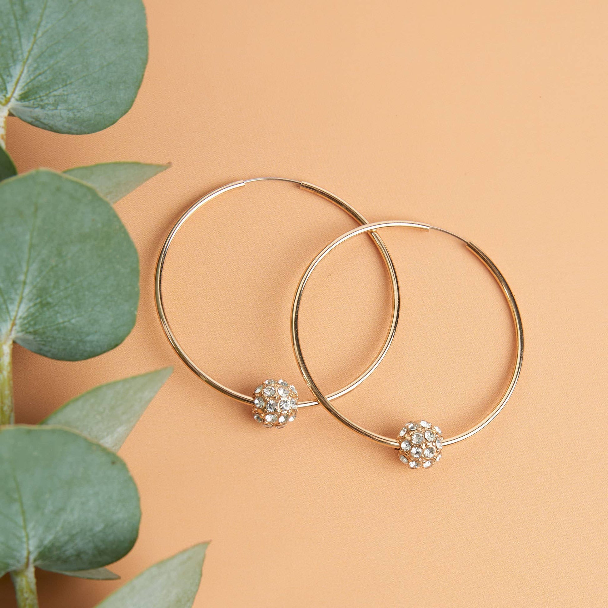 Turn heads with the Acadia Fireball Hoop Earrings, where bold design meets radiant elegance. These stunning gold hoops are adorned with shimmering gold beads, each delicately covered in clear, faceted stone accents that sparkle with every turn. The interplay of light and texture adds a fiery, yet graceful energy to these hoops, making them the perfect statement piece for any occasion. With a secure pin catch closure, these earrings are as easy to wear as they are breathtaking, elevating your look with a touch of brilliance and timeless charm.