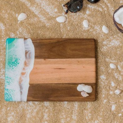 Stock your shelves for summer entertaining! Our most affordable resin-accented cheese board. These pieces are made from high quality Acacia hardwood and an Eco-friendly epoxy to create a one-of-a-kind piece of serve ware for your home. This bread board is perfect for a one or two person charcuterie board. Perfect gift for a house warming, wedding or maybe just a treat for Mom on Mother's Day. Serve your favorite snacks for a girls night in, a date night with your spouse or for a get together with friends. Hold the party you’ve always wanted to! We can only imagine the beautiful spreads you’ll create with your new cheeseboard!