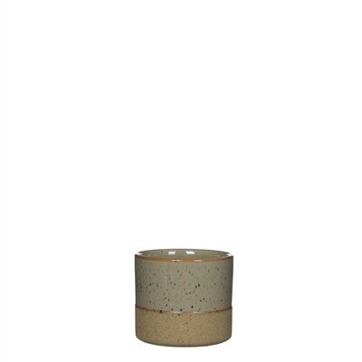 Two-Tone Cream Pot, This sweet little ceramic pot could hold a plant or even some utensils! Two-tone coloring in cream and tan. Measures @ 4.25"