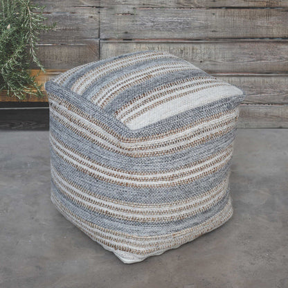 Handwoven fabric in light gray, cream, and natural tones that create extra durability. Has versatile use as an ottoman, extra seating for guests, or even an accent table when topped with a decorative tray.