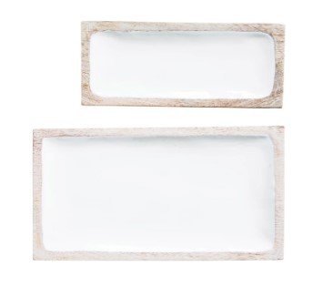Dress up a table, mantel, countertop, or any other surface of you store with these beautifully crafted enameled mango wood trays. These trays are food safe, so they're perfect for yummy Hors d'Oeuvres, a delicious side dish, decedent deserts, or fresh fruits & veggies, when entertaining.