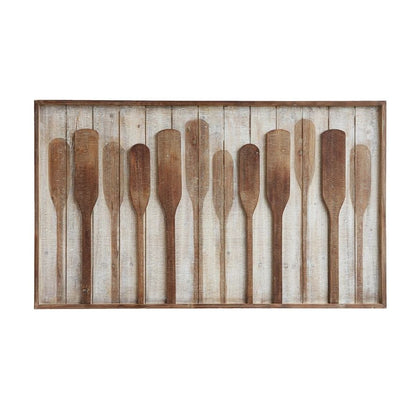 Get ready to row yourself into peaceful bliss. This set of paddles are raised and ready to be added to your wall decor. The multiple natural wood shades will fit in with most color schemes.