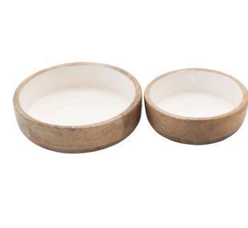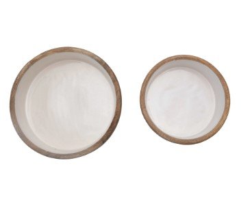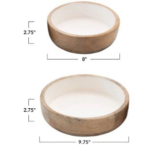 Beautifully crafted mango wood bowls are lined with a white enameled interior for easier cleaning. Food Safe. Hand Wash Only with Lukewarm or Cold Water; Lightly Wax Wood as Needed to Maintain Shine..