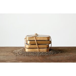 Square Marble Coasters, Grey w/ Gold Edge, Set of 4
