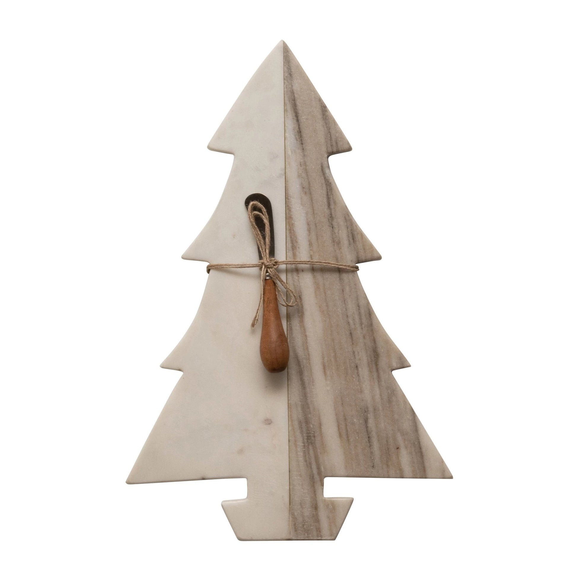 This cheese/cutting board is a stylish addition to any holiday parties. Made out of marble, this board is in the shape of a Christmas tree, and matches any decor with its neutral white and buff color. Whether used for cutting foods in a festive way, or displaying homemade appetizers in style, this piece is a festive must-have for any kitchen