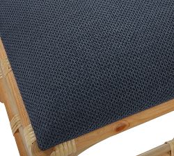A refreshing coastal accent featuring a crisp white textured fabric, over a naturally finished solid wood base with rattan wrapped accents. Perfect doubled up at the foot of a bed or under a console table.