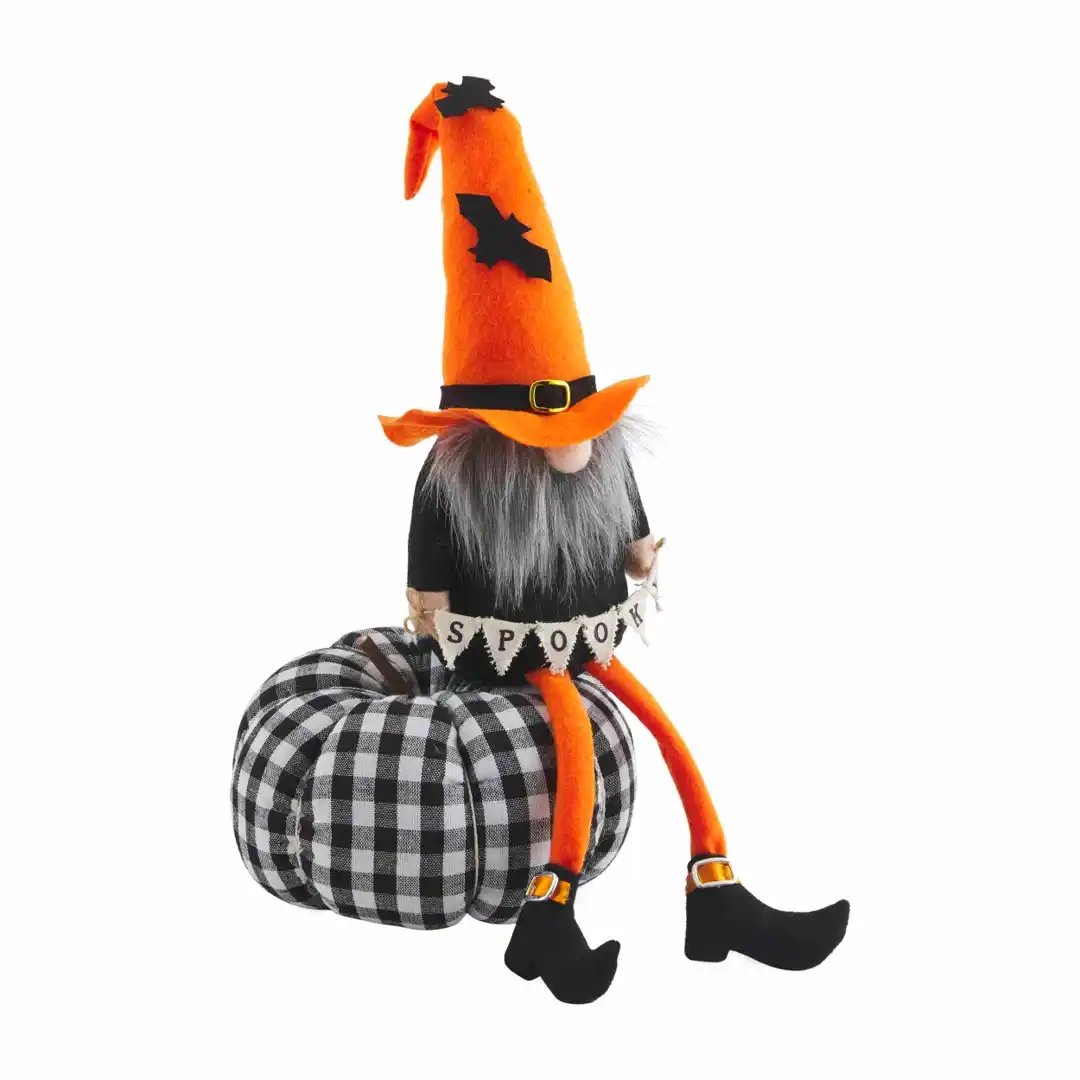 As All Hallow's Eve approaches, make sure your home is ready with our Large Halloween Pumpkin Gnome. The embellished felt and cotton gnome sits on a cotton pumpkin. The gnome features a classic Halloween design, complete with bats and a banner that reads "spooky".