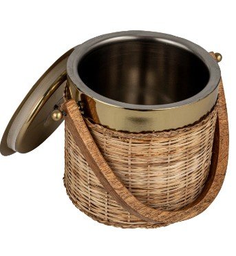 This 3-Quart Stainless Steel and Rattan Ice Bucket is a statement piece that combines practicality with a sophisticated design. The gleaming gold finish of the stainless steel provides a stunning contrast to the rustic charm of the rattan wrap, making it a versatile accessory for various decor styles, from boho to French country. Measuring 9.5 inches long and 7.5 inches high, it's sizable enough to hold a generous amount of ice, ensuring drinks stay cool during any event. The round shape adds a touch of softness, inviting anyone to reach for a refreshing beverage. Whether used for special occasions or everyday elegance, this ice bucket is a must-have for those who appreciate a blend of artisanal craftsmanship and chic design.