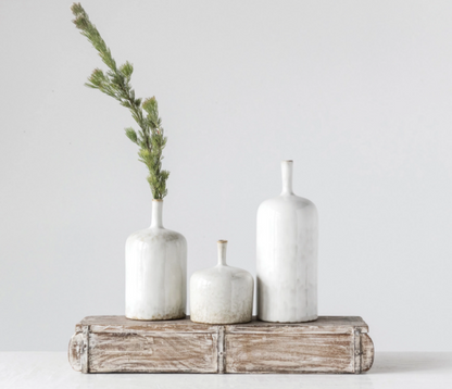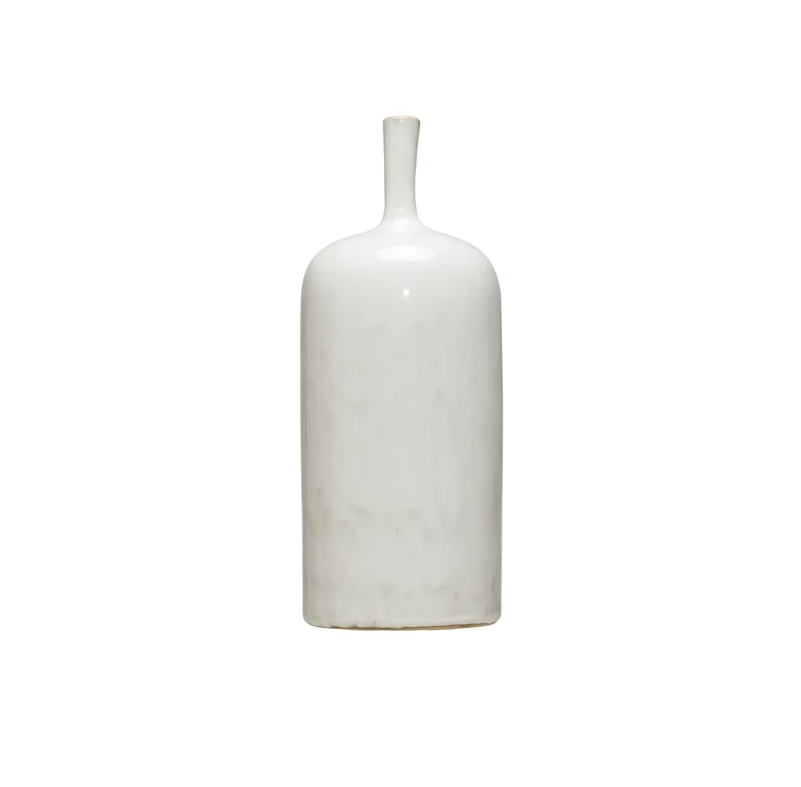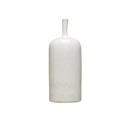 Stoneware Vase, Reactive Glaze, White (Each One Will Vary)