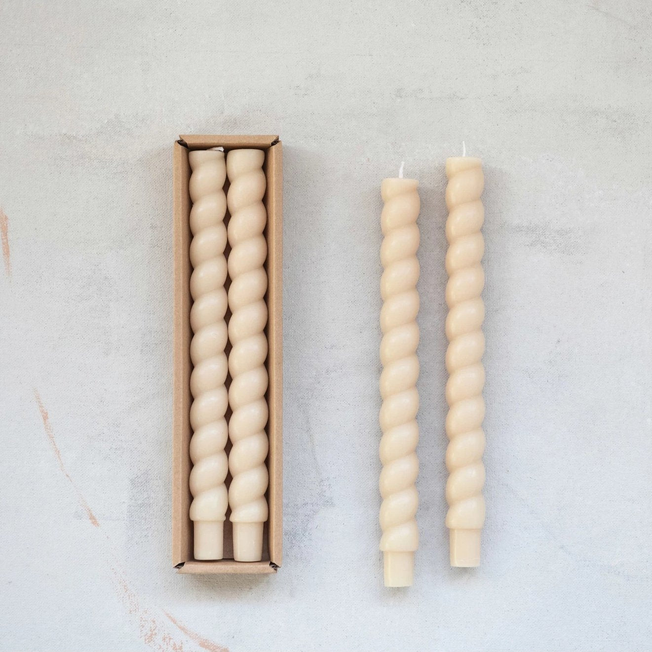 These taper candles are an effortless way to add both style and ambience to any home. These unscented candles come in a set of 2, and each feature a detailed and unique twisted shape. These are perfect for intimate gatherings, dinners, and parties