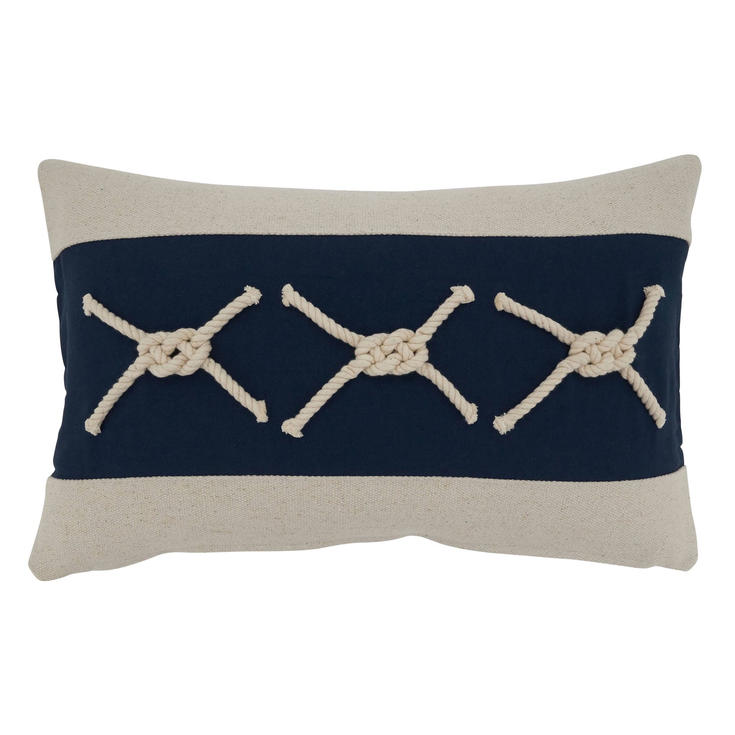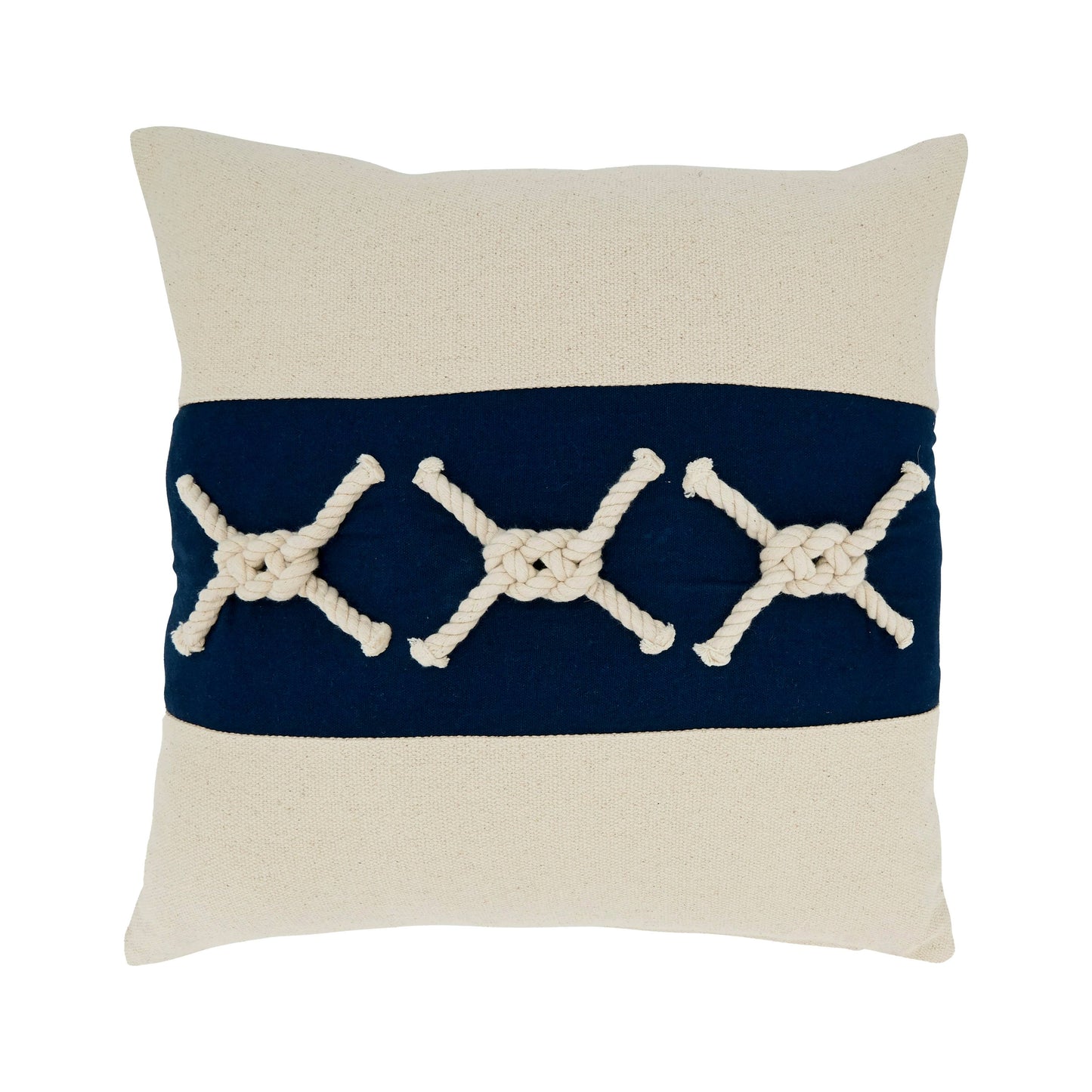 Perfect for both living room and bedroom décor, this charming Rope Knots Appliqué Throw Pillow is a chic, stylish addition to your décor. Its nautical design brings a refreshing note to any space, and the two-tone color palette makes it easy to pair. Add a solid, dark color throw blanket for a contrasting effect.